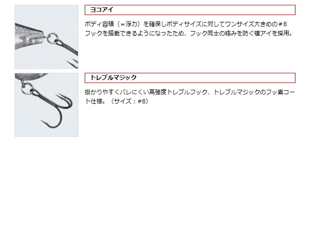 ●Hook Size:【EGトレブルマジック】フロント/#8・リア/#8